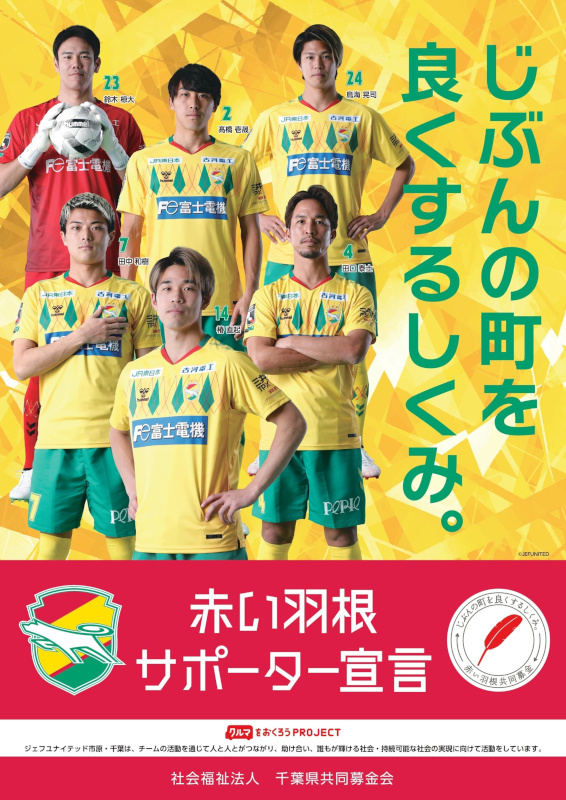 ジェフユナイテッド市原・千葉様は、2018年に「赤い羽根サポーター」宣言、2021年からは「クルマをおくろうPROJECT」を行っています。